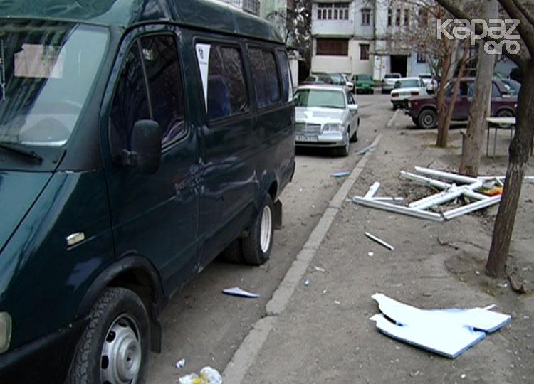 Partlayışın gücündən qopan ayna-qapı bina önündə dayanan avtomobillərə də ziyan vurub.