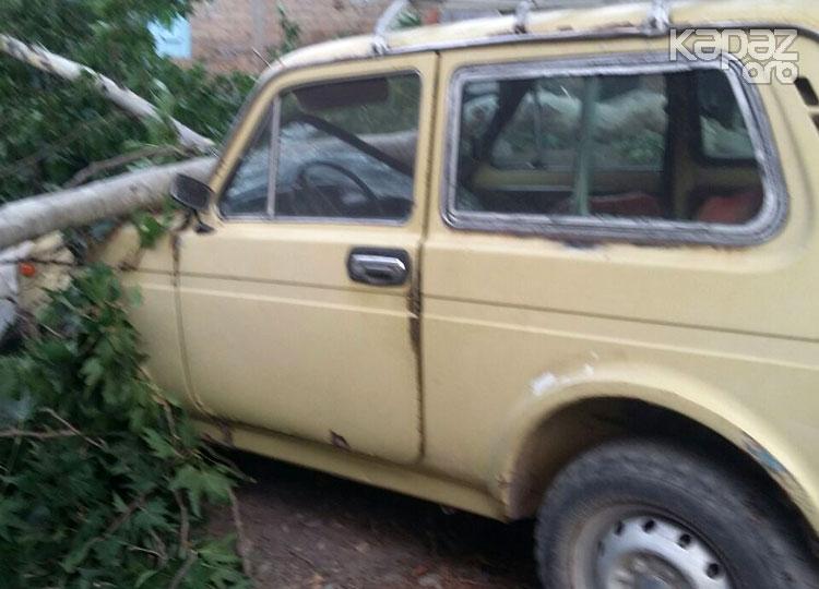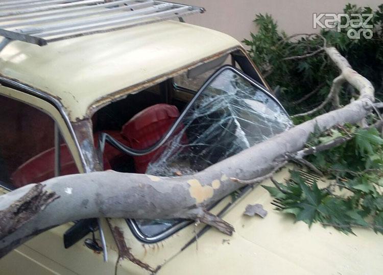 Samuxda küləyin fəsadı...Ağac “Niva”nın üzərinə aşdı