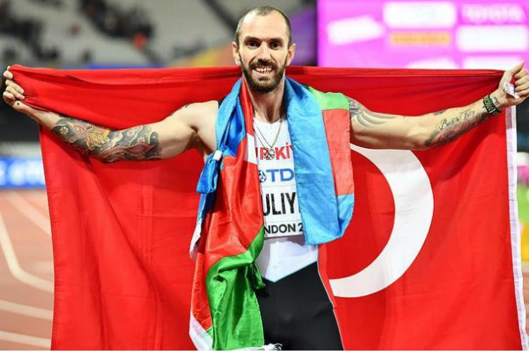 Türkiyə yığmasında mübarizə aparan azərbaycanlı atlet Ramil Quliyev Londonun ev sahibliyi etdiyi atletika üzrə dünya çempionatının qalibi olub. 200 metr məsafəyə qaçışda həmyerlimiz finişə birinci çatmaqla dünya çempionu adını qazanıb. O, finişə 20.09 saniyəyə çatıb. Dünya çempionu olan həmyerlimiz bu zəfərini Azərbaycan və Türkiyə bayrağı ilə qeyd edib.