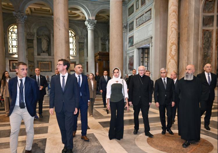 Azərbaycanın Birinci vitse-prezidenti Mehriban Əliyeva oktyabrın 16-da Vatikanda Müqəddəs Pavel Bazilikasında olub və Heydər Əliyev Fondunun dəstəyi ilə aparılan bərpa və tikinti işləri ilə tanış olub. Bazilika nümayəndələri bildiriblər ki, Müqəddəs Pavel Bazilikası Müqəddəs Pyotr kilsəsindən sonra Vatikanın ikinci ən böyük məbədi sayılır və 1980-ci ildə UNESCO-nun Ümumdünya İrs Siyahısına daxil edilib. Səfər çərçivəsində Mehriban Əliyeva həmçinin bazilikanın baş keşişi kardinal Ceyms Harvi ilə görüşüb. Görüşdə Birinci vitse-prezident qeyd edib ki, bu, onun son 14 ildə Vatikana altıncı səfəridir və Azərbaycanla Müqəddəs Taxt-Tac arasında möhkəm dostluq və qarşılıqlı hörmətə əsaslanan münasibətlər formalaşıb. Kardinal Harvi Azərbaycanın və Heydər Əliyev Fondunun mədəni irsin qorunmasına verdiyi töhfəni yüksək qiymətləndirib.