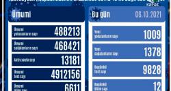 Azərbaycanda koronavirus infeksiyasına 1009 yeni yoluxma faktı qeydə alınıb, 1378 nəfər müalicə olunaraq sağalıb.COVID-19 üçün götürülən analiz...