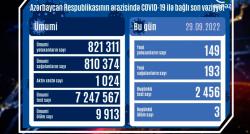 Azərbaycanda koronavirus infeksiyasına 149 yeni yoluxma faktı qeydə alınıb, 193 nəfər müalicə olunaraq sağalıb. Analiz nümunələri müsbət çıxan 3...