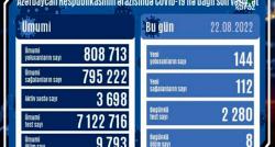 Azərbaycanda koronavirus infeksiyasına 144 yeni yoluxma faktı qeydə alınıb, 112 nəfər müalicə olunaraq sağalıb. Analiz nümunələri müsbət çıxan 8...