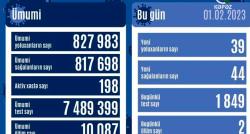 Azərbaycanda koronavirus infeksiyasına son sutkada 39 yeni yoluxma faktı qeydə alınıb, 44 nəfər müalicə olunaraq sağalıb. Analiz nümunələri müsbət...