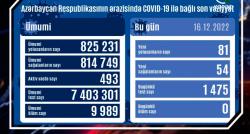 Azərbaycanda koronavirus infeksiyasına 81 yeni yoluxma faktı qeydə alınıb, 54 nəfər müalicə olunaraq sağalıb, vəfat edən olmayıb. Aktiv xəstə sayı...