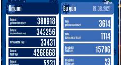 Azərbaycanda koronavirus infeksiyasına 3 614 yeni yoluxma faktı qeydə alınıb, 1 114 nəfər müalicə olunaraq sağalıb.Analiz nümunələri müsbət çıxan 23...