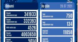 Azərbaycanda koronavirus infeksiyasına 750 yeni yoluxma faktı qeydə alınıb, 134 nəfər müalicə olunaraq sağalıb. COVID-19 üçün götürülən analiz...