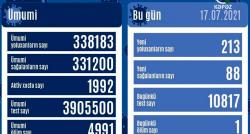 Azərbaycanda koronavirus infeksiyasına 213 yeni yoluxma faktı qeydə alınıb, 88 nəfər müalicə olunaraq sağalıb.COVID-19 üçün götürülən analiz...