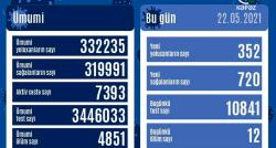 Azərbaycanda bu gün koronavirus infeksiyasına 352 yeni yoluxma faktı qeydə alınıb, 720 nəfər müalicə olunaraq sağalıb və evə buraxılıb.Son sutkada 12...