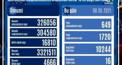 Azərbaycanda koronavirus infeksiyasına 649 yeni yoluxma faktı qeydə alınıb, 1 720 nəfər müalicə olunaraq sağalıb. Analiz nümunələri müsbət çıxan 16...