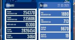 Azərbaycanda koronavirus infeksiyasına 1690 yeni yoluxma faktı qeydə alınıb, 713 nəfər müalicə olunaraq sağalıb və evə buraxılıb. COVID-19 üçün...